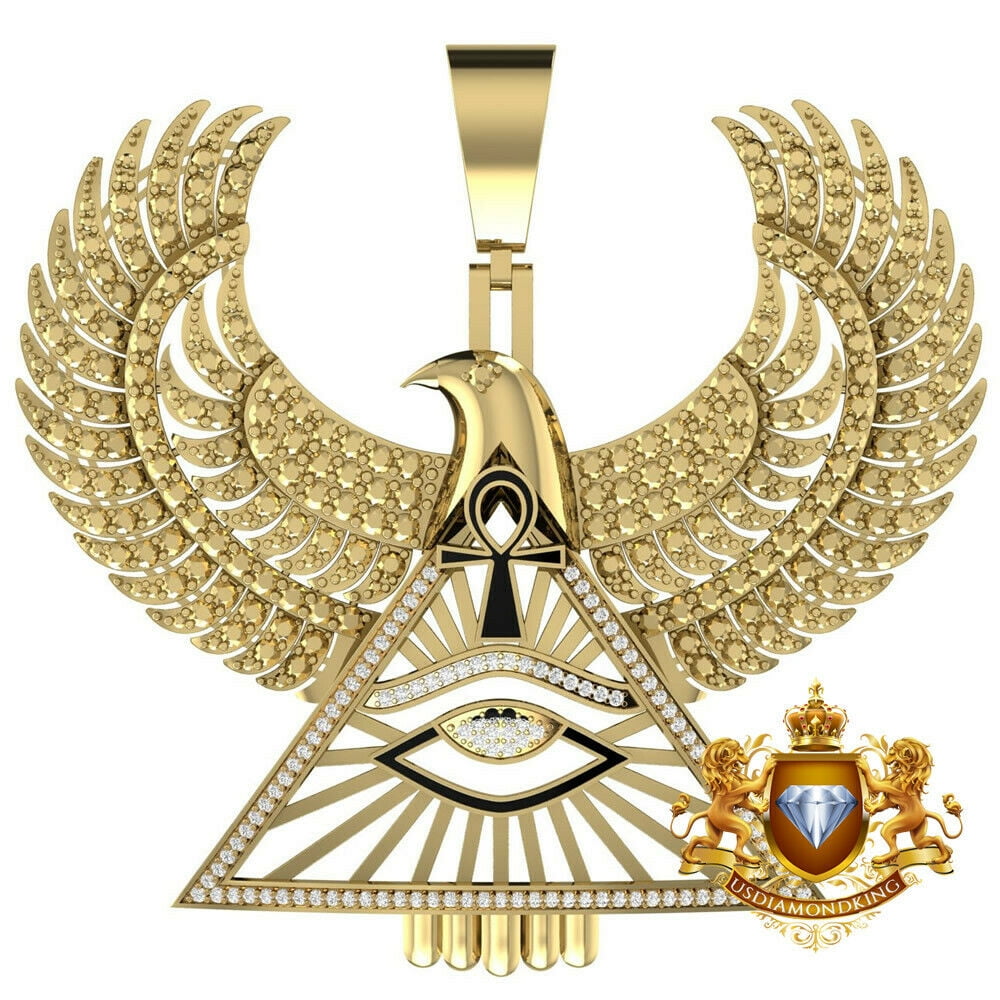 Genuine Diamond Egyptian God Horus Falcon Eagle Ankh Cross Pharaoh Pendent Charm Walmart Com