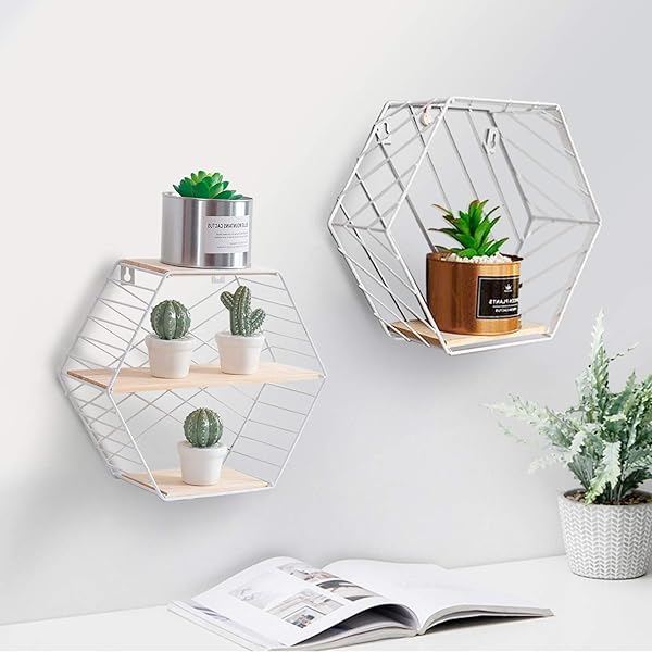 Set Of 2 Shelves Wall Mounted Metal Wire And Wooden Storage Shelves Decorative Floating Shelves Display Racks Bookshelf Record Holder Flower Plant Pot Shelf Rack Modern Office Home Display White Amazon Co Uk